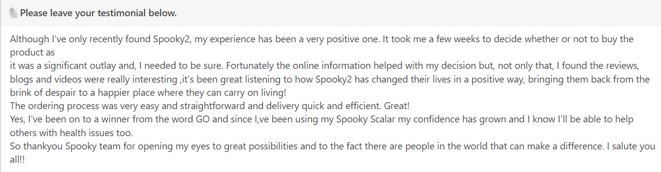 Yes, I’ve been on to a winner from the word GO and since I,ve been using my Spooky Scalar my confidence has grown and I know I’ll be able to help others with health issues too.