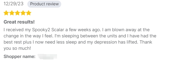 I received my Spooky2 Scalar a few weeks ago. I am blown away at the change in the way I feel. I’m sleeping between the units and I have had the best rest plus I now need less sleep and my depression has lifted. Thank you so much!