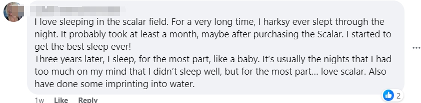 I love sleeping in the scalar field. For a very long time, I harksy ever slept through the night. It probably took at least a month, maybe after purchasing the Scalar. I started to get the best sleep ever! Three years later, I sleep, for the most part, like a baby. It’s usually the nights that I had too much on my mind that I didn’t sleep well, but for the most part… love scalar. Also have done some imprinting into water.