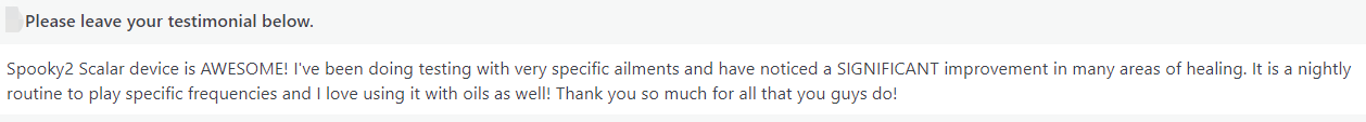 Spooky2 Scalar device is AWESOME! I’ve been doing testing with very specific ailments and have noticed a SIGNIFICANT improvement in many areas of healing. It is a nightly routine to play specific frequencies and I love using it with oils as well! Thank you so much for all that you guys do!