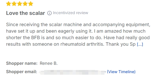 Since receiving the scalar machine and accompanying equipment, have set it up and been eagerly using it. I am amazed how much shorter the BFB is and so much easier to do. Have had really good results with someone on rheumatoid arthritis. Thank you Spooky2 for the wonderful equipment you produce and all the hard work you keep putting in to help everyone. Thank you John and Echo and Team.