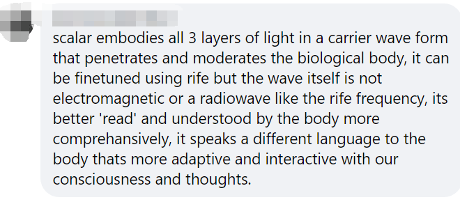 Scalar embodies all 3 layers of light in a carrier wave form that penetrates and moderates the biological body, it can be finetuned using rife but the wave itself is not electromagnetic or a radiowave like the rife frequency, its better ‘read’ and understood by the body more comprehensively, it speaks a different language to the body that’s more adaptive and interactive with our consciousness and thoughts.