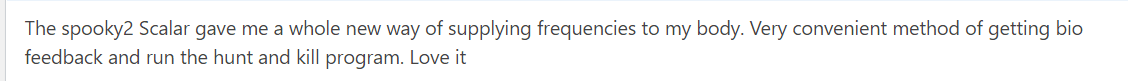 The Spooky2 Scalar gave me a whole new way of supplying frequencies to my body. A very convenient method of getting biofeedback and run the hunt and kill program. Love it.