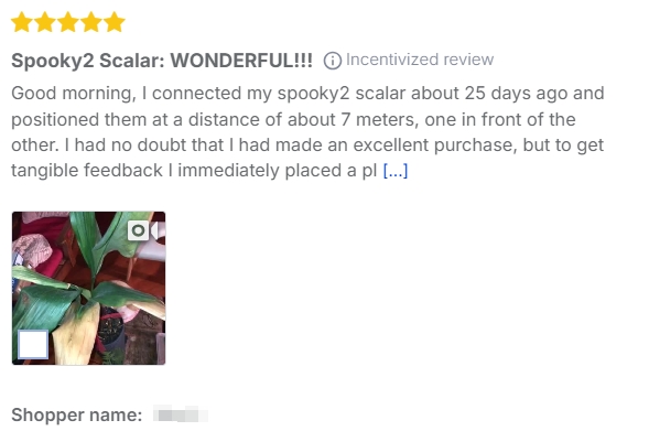 Good morning, I connected my spooky2 scalar about 25 days ago and positioned them at a distance of about 7 meters, one in front of the other. I had no doubt that I had made an excellent purchase, but to get tangible feedback I immediately placed a plant between the two devices that in normal conditions would still have only a few months to live. So, since enough time had passed to be able to see any positive signs, yesterday I checked the pot containing the plant and to my enormous surprise I found that it had produced about ten new shoots. This event gave me confirmation, where necessary, of the enormous potential of my new purchase. At the moment I am only using pure scalar energy, but very soon I plan to connect the generator and everything else to the device. What can I say again, thanks Spooky2!