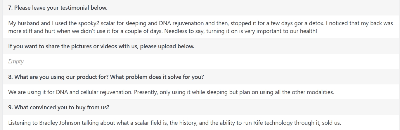 Listening to Bradley Johnson talking about what a scalar field is, the history, and the ability to run Rife technology through it, sold us.